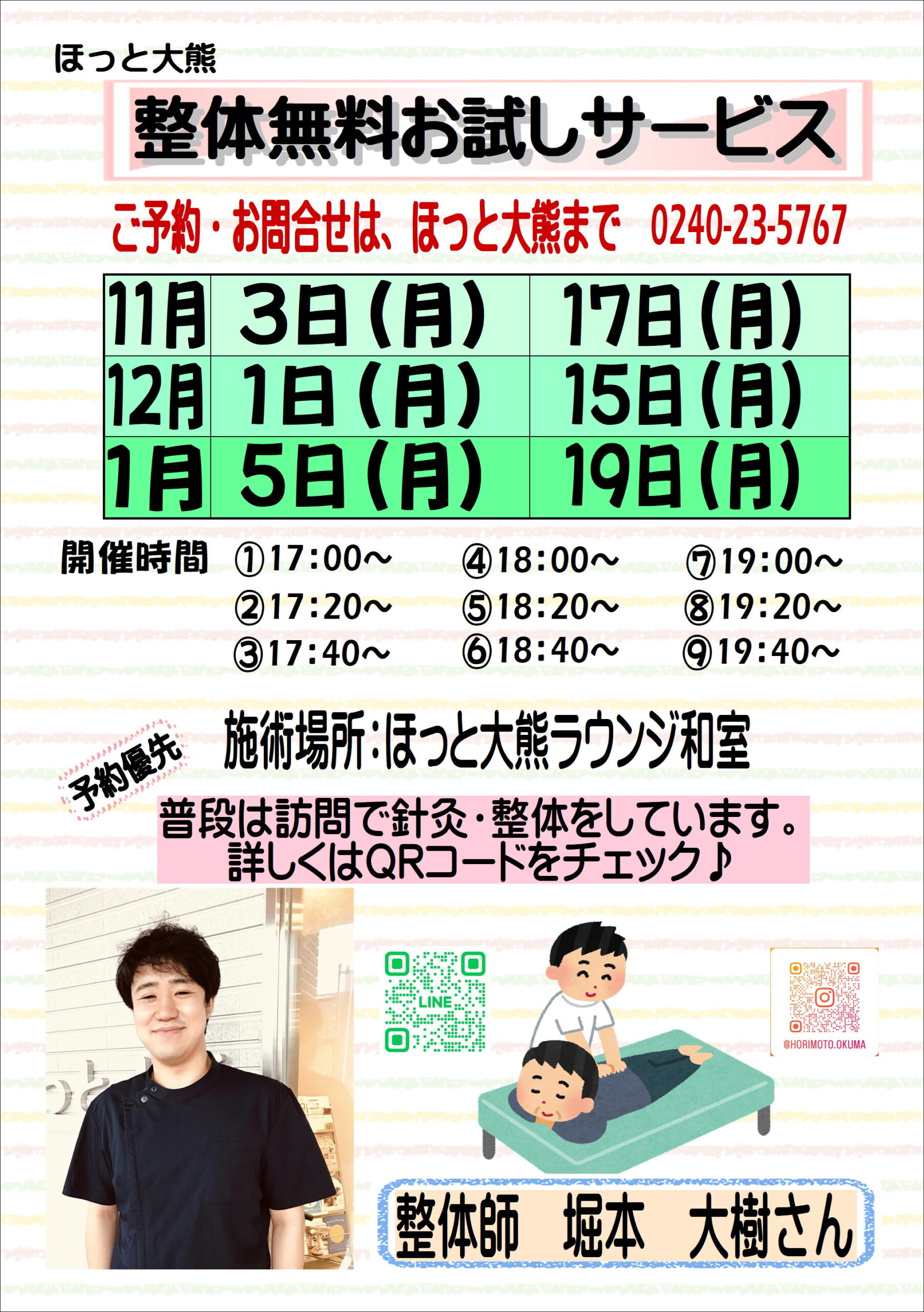 時間等、詳しくはほっと大熊までお問い合わせください。