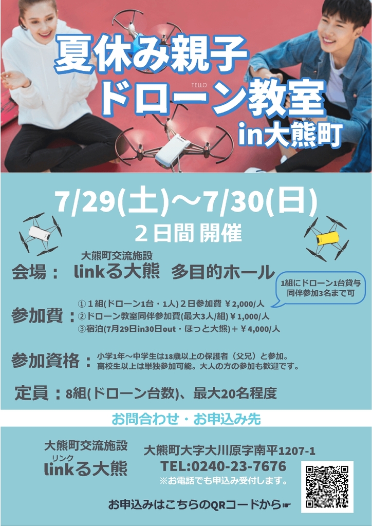 Summer Vacation Parent-Child Drone Class in Okuma Town July 29th (Sat) - July 30th (Sun)